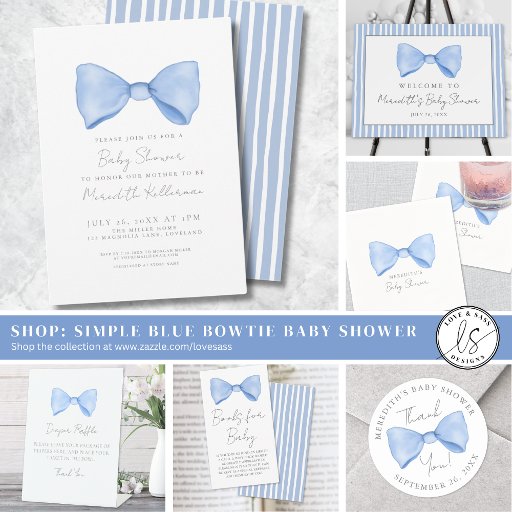 Cute Blue Bow Watercolor Bowtie Boy Baby ShowerDesigned by Jo P.