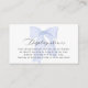 Kindly let guests know about your display shower with this beautifully designed Blue Bow Display Shower Enclosure Card. Featuring a delicate bow illustration and soft pastel blue tones, this card requests that gifts be brought unwrapped, allowing more time to celebrate with loved ones. A thoughtful and stylish addition to your baby shower stationery!