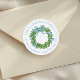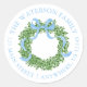 Blue Bow Christmas Boxwood Wreath Address Classic Round Sticker