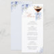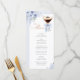 An elegant bridal shower menu card featuring a refined martini glass illustration with a soft blue bow and delicate floral accents.