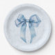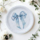 Blue Bow Elegant calligraphy Boy Baby Shower Paper Plate