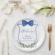 Blue Bow Eucalyptus Crest Baby Shower Welcome Paper Plate