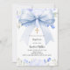 Blue bow florals boy Baptism Invitation