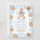Blue Bow Gingerbread Christmas Baby Shower Gingham Invitation