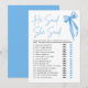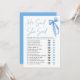 Add a touch of fun and elegance to your bridal shower with the "He Said, She Said" game featuring a charming blue bow design. This engaging activity invites guests to guess whether each statement was made by the bride or groom, sparking laughter and conversation.