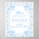 Blue Bow How Many Kisses Bridal Shower Game Poster