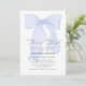Celebrate the upcoming arrival of a baby boy with this Blue Bow Baby Shower Invitation! Featuring a beautifully illustrated bow, soft pastel hues, and elegant typography, this timeless design sets the perfect tone for a sophisticated and memorable celebration. Personalise it with your event details for a unique touch!