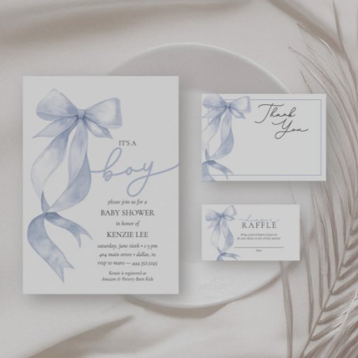 Celebrate the upcoming arrival of your baby boy with our trendy blue bow 'it's a boy' baby shower design.