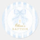 Blue Bow Lace Boy Baptism Classic Round Sticker