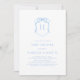Cute blue minimalist, vintage inspired baby shower invite with a whimsical hand drawn watercolor monogram crest.