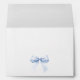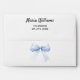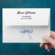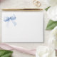 White background. Personalize and add a name and your return address. The name is written with a modern and trendy handlettered style script. Decorated with a blue bow.