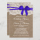 Blue Bow Rustic Burlap & Lace Wedding Shower Invitation