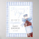 This fun baby shower welcome sign features a retro soda bottle with a pretty blue bow and gingham background. Designed by Thisisnotme©