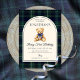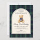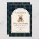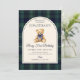 Blue Bow Teddy Bear Tartan Birthday Invitation