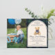 Blue Bow Teddy Bear Tartan Photo Birthday Invitation