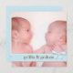 Trendy blue and brown design is just perfect for announcing the arrival of your little baby boys. Featuring a full size photo on the front, highlighted with a sweet band of blue, patterned with little circles and topped with a bow, your little angels first names are highlighted here as well. On the back, the text boxes are designed with room for both baby's names and details. A lovely first introduction of your little boys to family and friends.