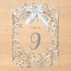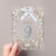 blue bow white baby's breath flowers table number