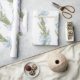 This wrapping paper features a soft, elegant design with light blue bows and green pine branches arranged in a repeating pattern. The delicate watercolor-style illustration gives it a serene and festive feel, ideal for a winter or Christmas theme. The white background enhances the airy and clean aesthetic, making it perfect for subtle and sophisticated gift wrapping.