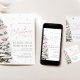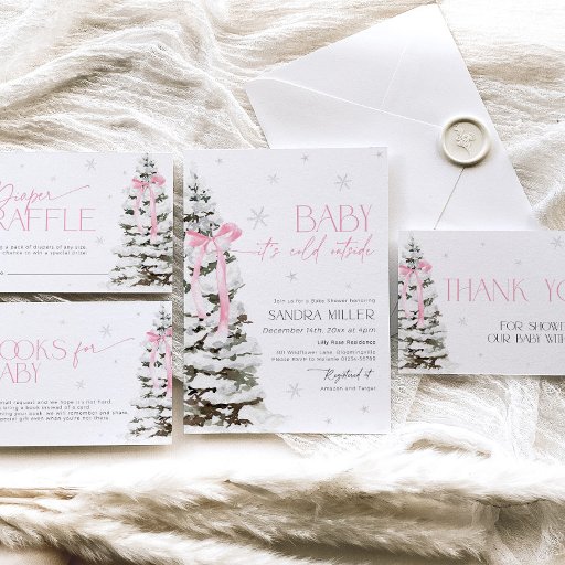 This winter Baby Shower invitation features hand drawn watercolor trees and a cute blue bow. The modern winter wonderland theme is perfect for a coquette Sorinkle Party. At the backside you can add your own photo of beautiful the mum-to-be.