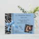 Blue Bow With Silver Pearls And Zebra Stripes Invitation