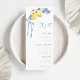 Bring fresh charm to your table with this Blue Bow Lemon wedding menu, featuring hand-painted yellow lemons, soft blue bows, and elegant script that reads “Let’s Eat.” Perfect for an Italian-inspired wedding, summer celebration, or Mediterranean dinner party, this lemon menu blends cheerful color with timeless elegance. A lovely choice for couples who love bright, romantic, and joyful details.
