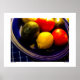 Add some color to your world with this Poster by ZoeSPEAK, an original photograph of fruit in a cobalt blue bowl. Some lemons, avocados and tomatoes add yellow, green and red to the mix, all under a warm yellow light. Under the photo there is small text with title: Blue Bowl of Fruit, and artist: Image by L.M.Glenn.