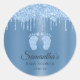 Blue Boy Baby Shower Baby Feet Glitter Classic Rou Round Sticker