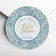 Blue Boy Baby Shower Floral Script Marigold Morris Classic Round Sticker