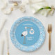 Celebrate the new parents and Baby with this cute stork baby shower design! The blue and cute cartoon stork bird makes it a perfect design for a baby boy on the way! Works great for a simple Spring baby shower design!