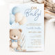Blue Boy Teddy Bear Boho Baby Shower Invitation