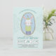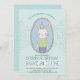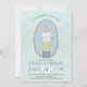 This illustrated bunny birthday invitation can be easily customised with birthday details for your little one's special day. The rabbit birthday invite features a cartoon bunny wearing jeans and a party hat, a yellow and blue frame, green confetti, and the phrase "It's some bunny's birthday" against a green background. The back of the invite includes a white polka dot pattern and green background.