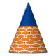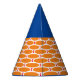 Blue Bright Orange White Tiled Geometric Pattern Party Hat