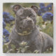 "Blue Brindle Beauty: A Staffy in Blue Roses Stone Coaster