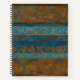 Horizontal stripes in shades of blue, interspersed with horizontal blocks of bronze and old gold, giving this notebook a weathered, oxidised, grunge appearance.