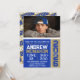 Blue & Bronze Gold Vertical Modern Graduation Photo Invitations