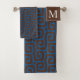 Blue &Brown Abstract Pattern Monogram name Bath Towel Set