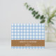 Blue brown gingham lined custom name recipe card