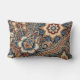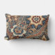 Blue Brown Ivory Indonesian Batik Floral Pattern Lumbar Cushion