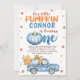 Blue Brown Orange Pumpkin Truck 1st Birthday Invitation