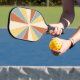 blue and brown yellow Retro colorful stripes pattern monogram pickleball paddle ,