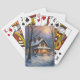 Blue Brown Rustic Winter Cabin Snow Painting Playing Cards
