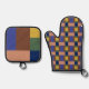 Blue Brown Tan Green Yellow Colour Block Print Oven Mitt & Pot Holder Set