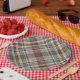 Blue, brown and beige shades, in diagonal striped checks or plaid.