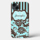 This chic and modern personalised, aqua blue, brown, and white stripes with floral damask pattern Case-Mate iPad Air Case has spots for you to add your name, initials, logo, monogram or other text.