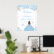 This elegant and glamourous winter sweet sixteen welcome sign features a beautiful princess with brunette hair and fair skin in a blue ball gown. The text combines handwritten script and modern sans serif fonts for a classy and sophisticated look. The floral arrangements, snowflakes and silver confetti create the perfect blend of rustic and chic.