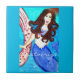 blue brunette mermaid tile