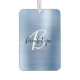 This elegant personalized car air freshener features a monogram and first name in modern black and white script on a trendy blue faux brushed metal background.