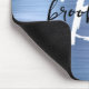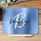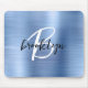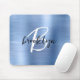 Blue Brushed Metal Black White Script Monogram Mouse Pad