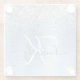 Easily personalise this trendy chic glass coaster design featuring pretty silver sparkling glitter on a blue brushed metallic background.