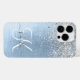 Blue Brushed Metal Silver Glitter Monogram Name iPhone Case